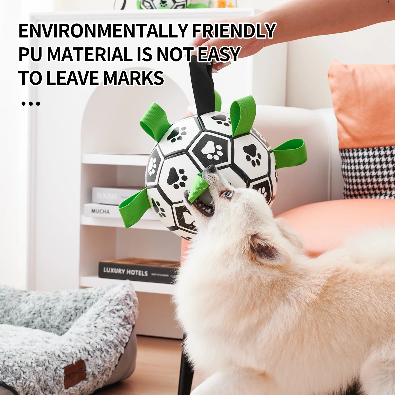 Unleash endless possibilities with the Splash Soccer Ball! Engage in tug-of-war, toss it around, or enjoy a game of fetch. Even when you’re away, your dog will have a blast pushing it around, chasing it, and gnawing at its sturdy tabs.